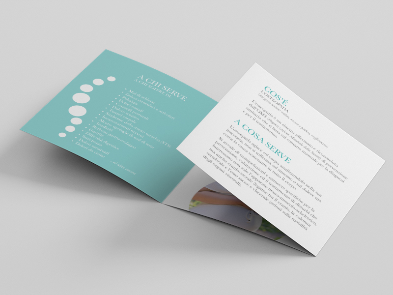 Avendo da poco avviato la propria attività, le risorse economiche erano limitate, quindi le ho creato un piccolo pieghevole riassuntivo delle prestazioni e dei servizi.